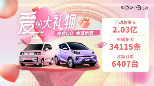 8月4日浪漫七夕,奔赴一场爱的约会,奇瑞QQ“爱的大礼物 奇瑞QQ全城示爱”活动圆满结束!不仅打造了网红爆款互动话题#说出你的爱#,近17万网友参与并分享了他们记忆深刻的爱情故事;还联动了七大会场一起打造七夕线上直播团购会专场,人气主播送专属宠粉好礼;同时还在温州、济宁、东莞等城市,携QQ冰淇淋·桃欢喜和小蚂蚁·魅打造了时尚精致的七夕主题区域商超定展或外展活动,吸引众多观众驻足围观。本次活动总曝光突破2.03亿,终端集客34115条,收集订单达6407台!“爱的大礼物”,引爆浪漫七夕!