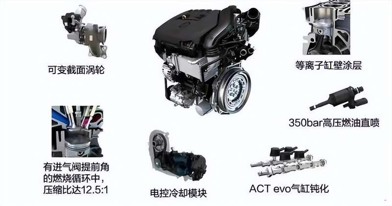 1.5T Evo2发动机还应用了大气等离子喷涂技术,以 APS 涂层代替 1.4T 铸铁缸套增加了散热能力,降低了爆震倾向;优化了润滑性能,减少了摩擦损失;减重2.81 kg。