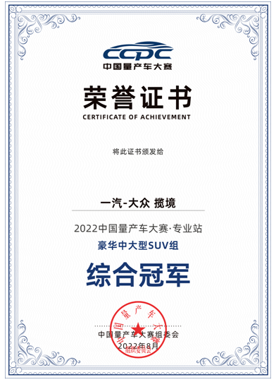 2022CCPC专业站收官,一汽-大众 揽境综合成绩第一,力摘7项桂冠!