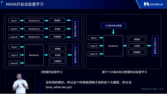 首先,MANA通过使用大规模量产车无标注数据的自监督学习方法打造模型效果,相比只用少量标注样本训练,训练效果提升3倍以上,这让毫末数据优势得以高效转化为模型效果,以更好适应自动驾驶各种感知任务需求。