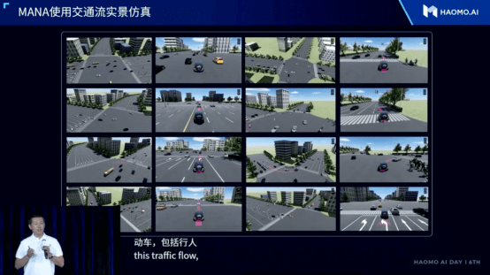 第五,MANA认知能力也再次进化。面对路口这一城市最复杂场景,MANA在仿真系统中引入了高价值的真实交通流场景,与浙江德清、阿里云合作,将路口这一城市最复杂场景引入仿真引擎,构建自动驾驶场景库,通过自动驾驶的真实仿真验证,时效性更高、微观交通流更真实,有效破解了城市路口通过“老大难”问题。