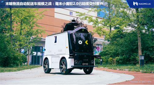 在4月举行的第五届HAOMO AI DAY上,毫末开行业先河,正式发布了中国首款10万元级别的末端物流自动配送车产品——“毫末小魔驼2.0”,打响了2022末端物流自动配送车规模之战的第一枪。时隔5个月后,毫末宣布“毫末小魔驼2.0”正式下线交付,进一步推动末端物流自动配送规模化落地再提速。
