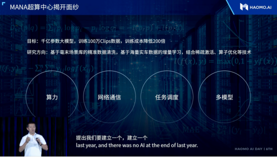 基于对自动驾驶3.0时代的洞察,以及大模型训练对算力的巨大消耗需求,毫末在现场还正式官宣了中国自动驾驶科技公司首个超算中心。“如何提升训练效率降低训练成本,实现低碳计算,是自动驾驶走进千家万户的一个关键门槛。”顾维灏表示,毫末超算中心的目标是满足千亿参数大模型,训练数据规模100万clips,整体训练成本降低200倍。