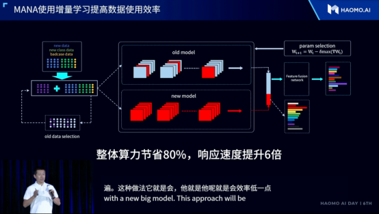 其次,MANA感知能力提升,让海量数据不再被区别对待。面对巨大数据规模下的“数据偏见”难题,MANA通过构建增量式学习训练平台,选择“有偏见”的参数进行定点优化,相比常规做法,整体算力节省80%,响应速度提升6倍。