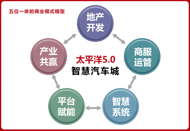 实际上从2019年开始,公司就在试图寻找一种多方受益并且可以持续发展的汽车有形市场运作模式,成立了专门军创大数据团队,走访了20余个汽车有形市场做了大量市场调研和可行性探索。到2022年相关数据和市场调研基本摸清后,湖北太平洋控股集团结合市场实际,首创了涵盖地产开发+商服运管+智慧系统+平台赋能+产业共赢的太平洋5.0智慧汽车城模式。该商业模式与传统汽车有形市场不同之处在于其涵盖了汽车有形市场的方方面面,链接了汽车消费市场的全业态,上下游。业主购买了太平洋5.0智慧汽车城的商铺不是结束,而是投资的开始;商户入驻了太平洋5.0智慧汽车城不是结束,而是服务的开始;消费者来太平洋5.0智慧汽车城享受服务后不是结束,而是保障的开始。太平洋5.0智慧汽车城对业主的“6大权益保障”,对入驻商户的“18大顶级服务”,对消费者(车主)的“六大承诺三大保障”等正是这一模式价值体现。同时结合公司自主研发的智慧系统,利用互联网和大数据等技术,来实现这一商业模式的智能化、系统化、标准化、数字化运作,赋能传统汽车有形市场数字化转型。