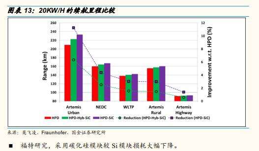 中金证券指出,IGBT关断时会产生拖尾电流,造成较大的开关损耗,因此限制了其高频驱动应用。相比之下,SiC材料能以多数载流子器件如MOSFET实现高压化,避免了开关损耗和频率限制问题。同时,SiC MOSFET有利于轻量化设计,如果将逆变器功率模块由Si模块替换为全SiC模块后,电机重量减轻了40%,尺寸减小了43%。