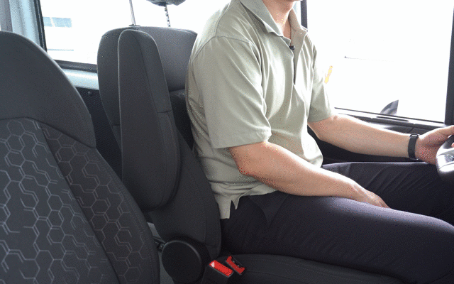 江铃福顺的座椅是针织绒布材质,坐垫软硬适中。主驾座椅右侧标配折叠扶手,左侧车门板上有一个外凸平台,这样司机的左右胳膊都有承托的地方,有效缓解驾驶疲劳。