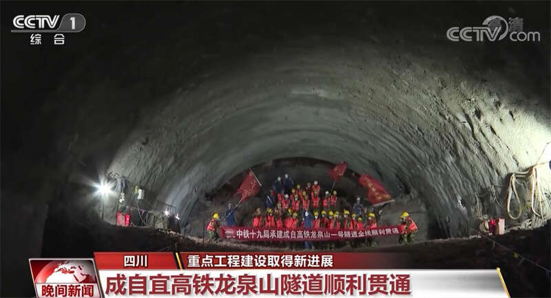 10月19日上午,成都至自贡至宜宾高速铁路全线控制性工程龙泉山一号隧道顺利贯通。龙泉山一号隧道位于四川成都龙泉山城市公园风景区境内,全长超过8000米,地质条件复杂,施工风险高。隧道的贯通为成自宜高铁全线贯通打下坚实基础。作为国家“八纵八横”高速铁路网京昆通道的重要组成部分,成自宜高铁线路全长约257公里,设计时速350公里,桥隧比高达76%,预计于2023年建成通车。届时,从成都到宜宾仅需1小时左右,成都核心城区与天府国际机场将实现快速连接,有助于打通成都到云南及珠三角区域的铁路大通道。
