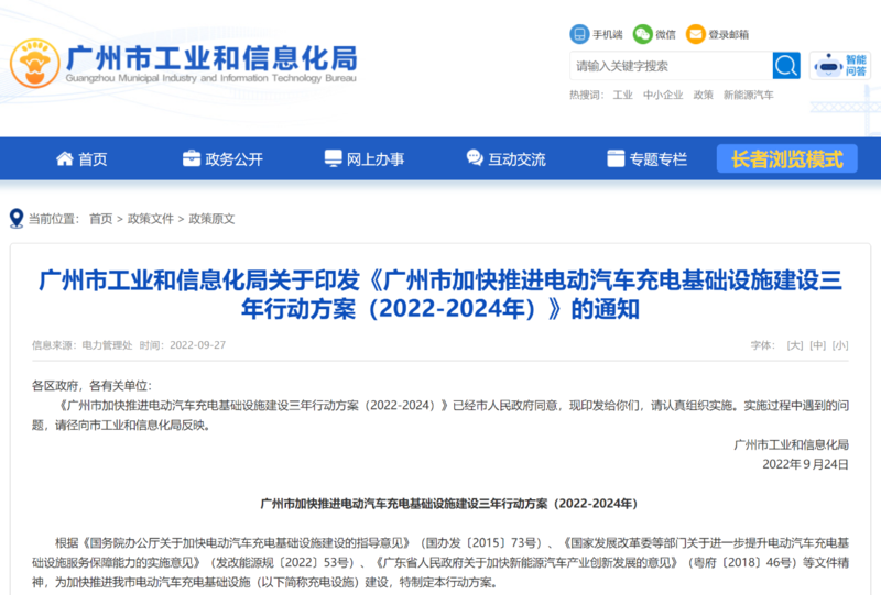 中国质量新闻网讯(张阳)随着新能源汽车的快速发展,与之配套的充电基础设施建设也迎来新一轮发展。近日,广州市工业和信息化局印发《广州市加快推进电动汽车充电基础设施建设三年行动方案(2022-2024)》(以下简称《行动方案》),明确提出将在2024年基本建成“一快一慢、有序充电”的充换电服务体系和“超充之都”。