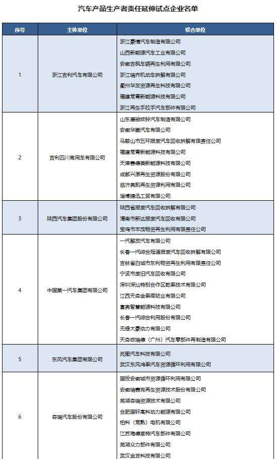 四部门公布11家汽车产品生产者责任延伸试点企业名单