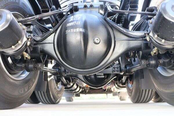前少片簧+后多片簧悬架结构(可选装后气囊悬架),后桥则为欧曼通用化后桥,允许最大总质量为49T。
