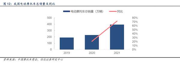 近年来,电动摩托车已经成为了摩托车行业新的增长极。信达证券在一份研报中指出,2021年,我国电动摩托车总销量达394万辆,同比增长71.77%;2019年~2021年,我国电动摩托车总销量年复合增速达44.11%。信达证券预计,摩托车电动化大势所趋,未来我国电动摩托车的销量与市场占比将保持较快提升。