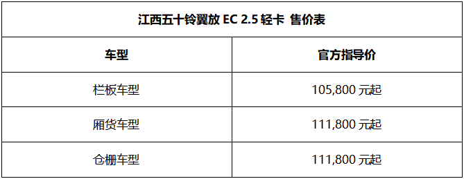 蓝牌轻卡新规实施,江西五十铃翼放EC 2.5 轻卡顺势而来