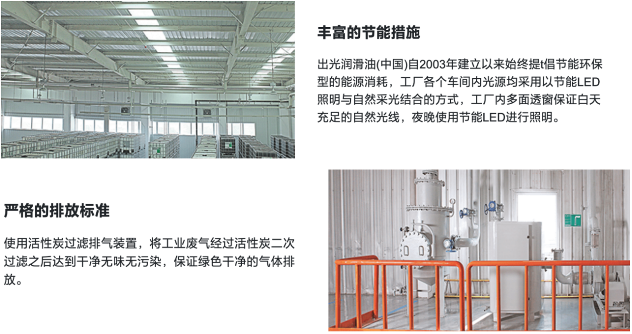 坚持节约资源和保护环境,像对待生命一样对待生态环境,是出光润滑油百年思想。出光秉承以打造“安全、绿色、和谐、健康”的现代化企业为发展愿景,深挖环保节能减排潜力,通过完善管理制度、技术工程改造、加大环保宣传与培训、加强产品核心竞争力等一系列举措,着力让绿色成为企业发展的最美底色,开创出安全高效与绿色环保“双赢”的发展之路,为出光润滑油绿色低碳与高质量发展提供强力保障。