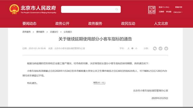 其实早在2020年的2月26日,北京市小客车指标调控管理办公室曾发布《关于继续延期使用部分小客车指标的通告》的通知,明文规定:“小客车指标有效期截止日在2020年1月24日至本市解除重大突发公共卫生事件响应之日后60日的指标持有人,可于解除之日后120日内办理完成车辆登记手续。
