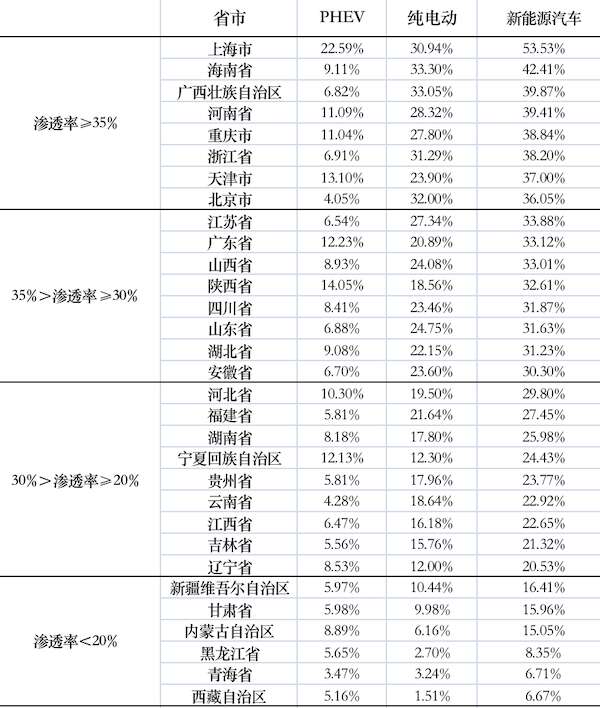 中国各省市新能源车渗透率大比拼,这两个省份竟然排进前三