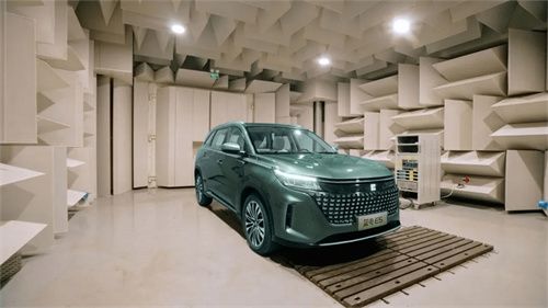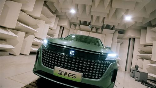 本次认证试验在中汽中心整车半消声室中进行,通过对蓝电E5进行噪声包括路噪、风噪、动力噪声、乘员噪声4大常见用车场景下的噪声采集,借助噪声回放系统,模拟被试车辆在真实行驶过程的不同情况下的语音助手交互表现。