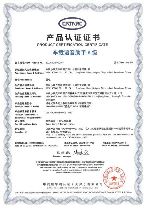 风光蓝电E5展现卓越交互能力 获得车载语音助手A级认证