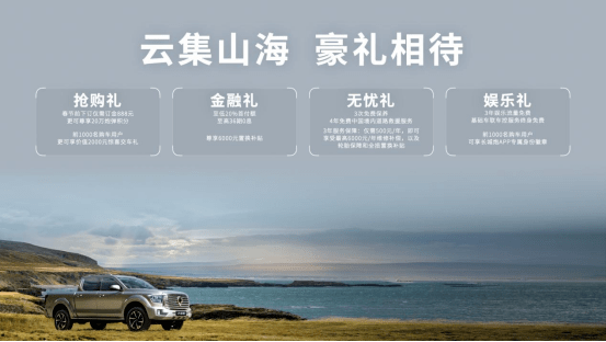 作为一款具有极致实力的豪华大皮卡,山海炮未来将继续围绕山海文化理念,通过山海行、山海营、山海好物一系列活动,与全球用户共赴山海、共享山海、共创山海。在山海炮极致实力和山海文化加持下,每个用户都能体验非凡的人生,追寻所爱的山海。