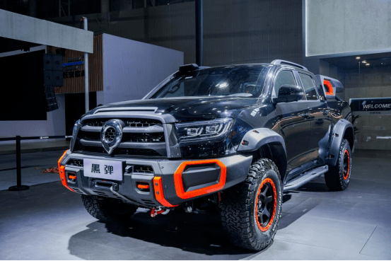 黑弹是长城炮联合运良越野,为深度越野和泛户外玩家打造的“荒野利器”。车辆采用全黑车身与亮橙点缀的配色方案,诠释“低调不平庸,高调不张扬”的设计理念。K-MAN氮气避震、原厂涉水喉、WARN绞盘等强悍的越野装备,配合分时四驱及差速锁,尽享越野驾驶乐趣。