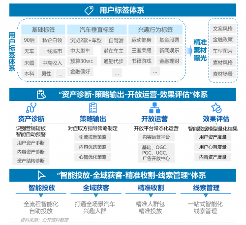 · 数字化在汽车行业营销链路中,具备覆盖全链路、有针对性的营销工具,智能投放模型,以及效果评估与诊断体系,是营销运营化的核心构件和载体