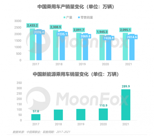 · 2017年至2020年,我国乘用车零售销量连续四年萎缩,2021年销量较2020年稍有回暖,但仍不及2019年的水平,我国整体乘用车市场已然从增量切换为存量模式