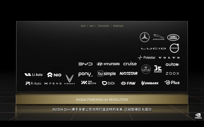 在披露Hyperion 9平台的同时,英伟达还宣布比亚迪以及美国造车新势力Lucid加入“朋友圈”。其中,比亚迪已凭借超过180万辆的年销量,成为全球最大的新能源汽车制造商,将于2023年上半年开始投产搭载DRIVE Orin平台的汽车,从而为英伟达产品的快速扩张提供助力。