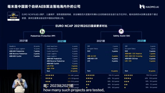 用户肯定的同时,毫末自研AEB算法也受到了国际权威机构的认可。顾维灏现场介绍“毫末自研AEB算法在2022年助力魏牌、欧拉、坦克总计四款车型拿到E-NCAP、ANCAP五星安全认证,毫末也成为中国首个出海量产落地的自动驾驶公司。”