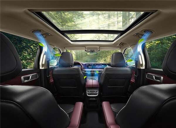 来到车内,在全新福特探险者启动的瞬间,相信您首先会被面前的双联屏所惊艳,全系标配12.3英寸全彩数字液晶仪表盘,并装载了27英寸贯穿式的大横屏,更有17英寸高清全彩TFT HUD抬头投影显示,具备IMAX观感享受。值得一提的是,全新探险者还搭载了第二代AAR增强型“蓝盾”智能馨风系统,即便行驶在城市道路也可以在车内畅享如沐春风的清新空间。