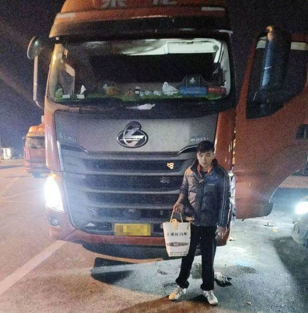 救援团队随即对故障车辆展开全面检查维修,发现方向机正常,经进一步检查,确定是第二桥一颗螺栓断裂。意料之外的故障,现场没有备件,救援团队果断决定,兵分两路,一路人员负责拆卸旧件,另一路人员返回服务站协调新件。下午17时13分,新配件抵达,一同到来的还有热水、食物和柳州特产螺蛳粉,给用户送上温暖。19时53分,新配件安装后,车辆彻底修好,解决了客户的燃眉之急。