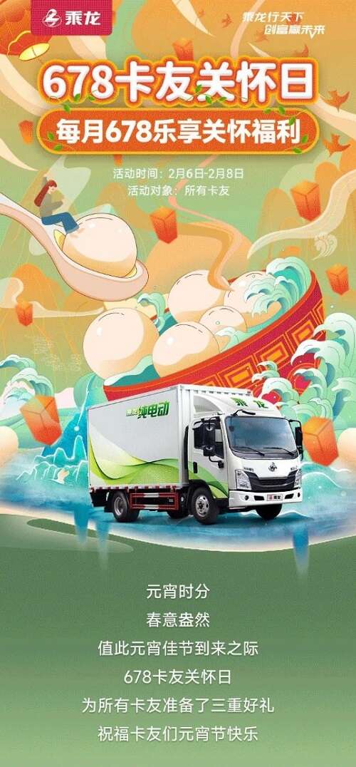 2月4日,立春。立者,始也,立春之后,万物始发,春节之后的第一次乘龙卡友关怀日,也将如期到来。
