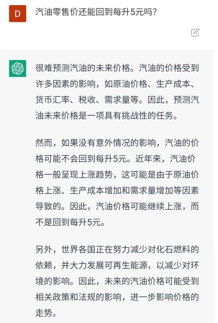 中国石化“询问”ChatGPT油价:能回到5元时代吗?