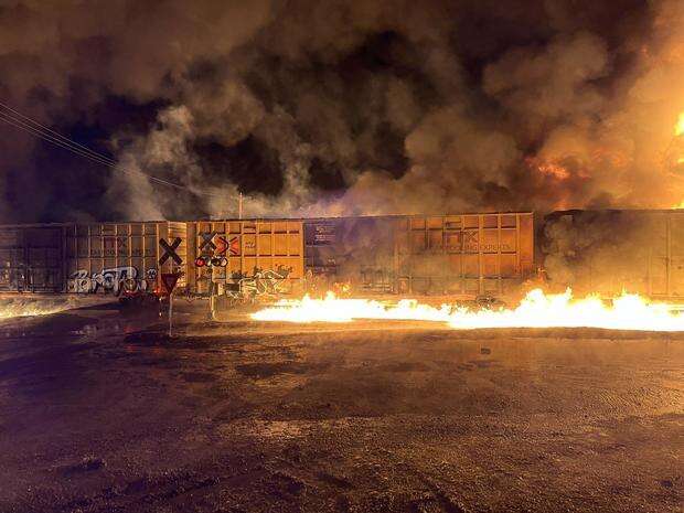 美国俄亥俄州火车脱轨引发大火并泄漏有害气体