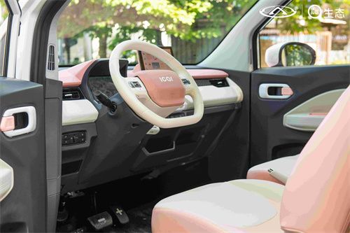 内饰方面,奇瑞QQ冰淇淋采用极简美学主义设计,配合撞色内饰更具特色个性,I Joy玩家电竞级座椅,人体工程学设计,配合前排4向调节,舒适驾乘感受;I Wheel 减压多功能方向盘,座椅加厚设计,车门内饰"0"压肘托,有效舒缓宝藏女孩们长时间驾驶疲劳。此外奇瑞QQ冰淇淋·桃欢喜还搭载了8寸大屏,支持多种APP,微信登录、地图导航、车机互联、OTA升级,语音交互等,在户外欣赏初春美景的同时,也能享受趣味十足的驾乘体验。