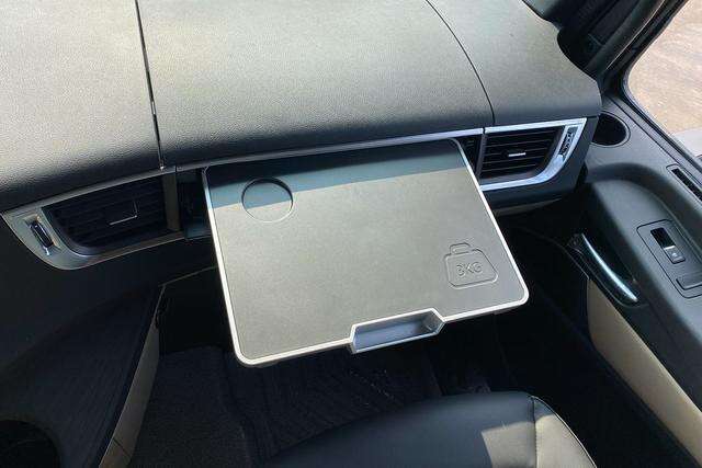 副驾驶位置设置有一块载重3KG的隐藏小桌板,这一设计不仅不占空间,让驾驶室内部保持整洁,还能够满足用户吃饭、看剧等时间对桌案的需求。