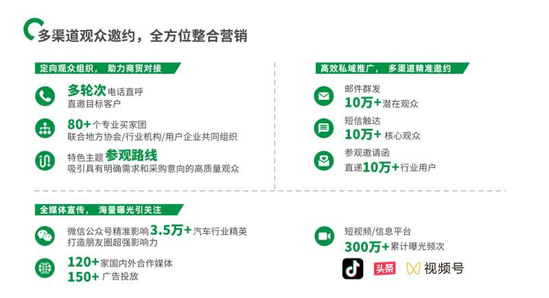 实践证明,展会面对面交流的洽谈方式更深入人心,不可取代。展会历经多年打磨,已积累来自新能源汽车主机厂、零部件供应商、相关配套产品等领域的高质量买家群,以硬核实力打造展会品质。