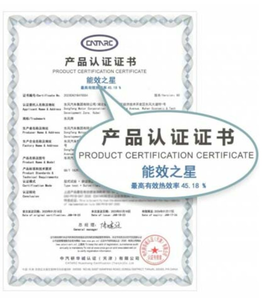 据了解,早在2020年,东风马赫1.5T发动机,就以41.07%的最高有效热效率,成为国内首款热效率超过41%的增压机型。今年2月7日,东风全新马赫1.5T混动发动机获得中汽研华诚认证的“能效之星”权威认证,成为中国汽车行业首款热效率认证突破45%的混动汽油机。