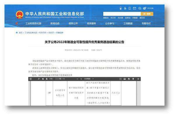 随着科技的不断发展,可靠、高质量已经成为制造业各领域关注的重要课题。2022年,国家工信部为推动落实《工业和信息化部办公厅关于做好2022工业质量提升和品牌建设工作的通知》“提高制造业产品可靠性水平”重点任务,开展“2022年度制造业可靠性提升优秀案例征集”工作,东风商用车有限公司践行“一切源于可靠”的品牌承诺,不断探索创新,以智能网联技术为支撑,打造《基于智能网联的车辆可靠性提升方案》于日前成功入选,该案例基于智能网联实现完好率服务,保障车辆运营可靠性提升、出勤率提高,赋能车辆运营价值提升,成为汽车行业获选单位代表之一。