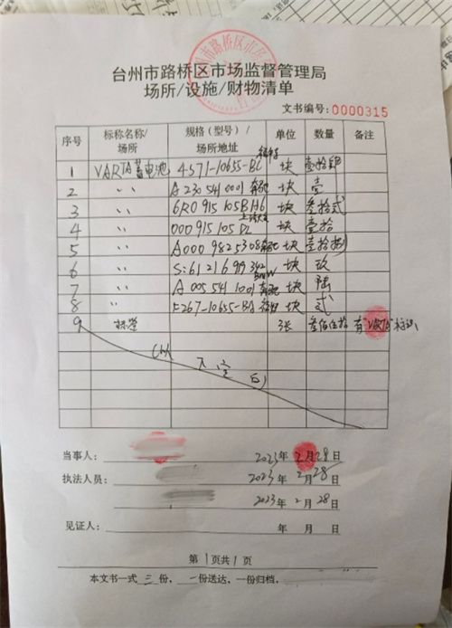 2023年2月,柯锐世瓦尔塔配合台州市路桥区市场监督管理局,对当地一家涉嫌侵权的公司予以打击。经现场鉴定及清点,共查获92只假冒瓦尔塔蓄电池以及350张带有VARTA标识的标贴,执法机关对这些产品采取查封、扣押、没收等行政强制措施。