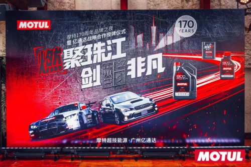 2023 年 3 月 22日 18 时30分,全球知名润滑油品牌MOTUL(摩特)170周年品牌之夜,暨亿通达战略合作授牌仪式在广州柏悦酒店举行,并在会上发布了摩特旗下的最新产品Motul 8100 Power酯金系列。