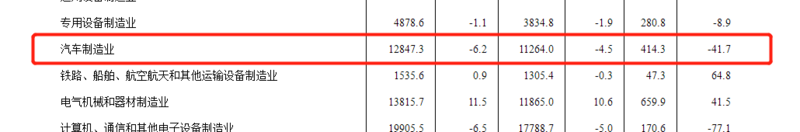 数据显示,今年1-2月份,汽车制造业营业收入为12847.3亿元,同比下滑6.2%。营业成本为11264.0亿元,同比下降4.5%。利润总额为414.3亿元,下降41.7%。