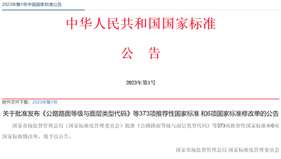 据了解,该批重要国家标准共包括《公路路面等级与面层类型代码》等373项推荐性国家标准和6项国家标准修改单的公告。此外,在农产品、信息技术、网络安全、金融服务等领域也发布了多项国家标准。