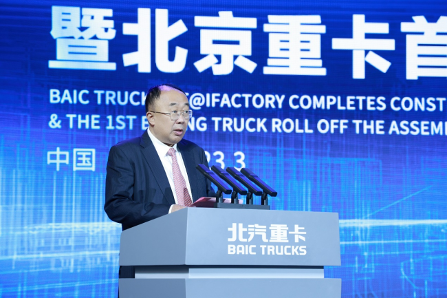 北汽重卡是北汽集团“十四五”期间京外重大投资项目的重要落子,北汽重卡数字孪生智慧工厂落成投产和北京重卡首台车下线,标志着北汽集团在重型商用车领域进入了南北布局的全新发展时代。北汽集团党委常委、副总经理蒋自力在致辞中表示,北汽集团将全力支持北汽重卡以先锋者的姿态,坚持战略引领和创新驱动,直面市场竞争,不断提升客户体验,为继续领跑中国商用车市场奠定坚实基础。