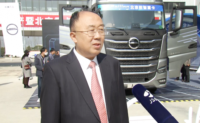 北汽重卡党委书记、总经理吴越俊接受现场媒体采访