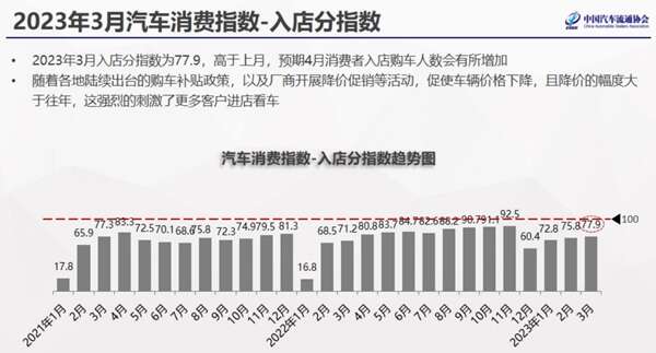作为国民经济支柱产业,拉动汽车消费对于推高整体消费水平、经济发展都起着至关重要的作用。除了汽车限购城市不断松绑,近来终端市场的大幅优惠活动也将拉动消费热情。据中国汽车流通协会数据显示,3月,汽车消费指数中的入店分指数显著提升,达77.9。对此,流通协会认为,随着各地陆续出台购车补贴政策,以及厂商开展降级促销等活动,使车辆价格下降,且降价幅度大于往年,强烈刺激了更多用户进店看车。流通协会还预计,4月消费者入店购车人数还将有所增加。