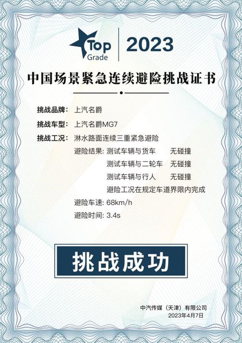 能够完成本次超高难度的紧急避险挑战,得益于上汽名爵MG7配备了E-LSD电子限滑差速器,能够有效抑制横摆,提升操控稳定性,同时保证了车辆良好的循迹性,提升前驱车的转向性能,在任何复杂路面都能全面提升安全性能,防止汽车打滑。而且,其采用的mCDC智能可调电控悬架可设置多档调节,给予车辆良好的支撑,不但能够充分体现车辆的运动性能,还能根据路面状态智能响应,实时匹配不同阻尼系数,提高驾乘感受的舒适性 。