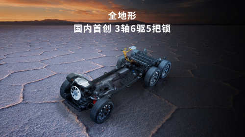通过匠心独运的设计,实现极端狂野的”3轴6驱”布局,标配5把电控差速锁,成就全场景、全地形超级越野能力。