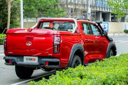 传动方面,与发动机匹配的采埃孚8AT变速箱,其绵密齿比能带来平顺无感的换挡体验,还能高效发挥发动机的动力潜能。游艇式换档杆不仅设计感十足,也有出色的手感,更容易上手。在2.0T+8AT的动力组合下,越野炮的动力随叫随到,驾驶起来游刃有余,即便货箱高负载行驶也毫无压力。