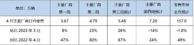 在周度走势推算方面,主要厂商零售第一、二周的日均分别为3.15万和3.67万,环比分别为8%、23%,第三周预计日均零售5.48万,环比26%,与第二周走势基本持平。考虑到3月最后一周存在厂商季度末冲量行为,参考往年季节性表现,预计第四周市场环比-14%,综合估算4月零售将达到157.0万辆。