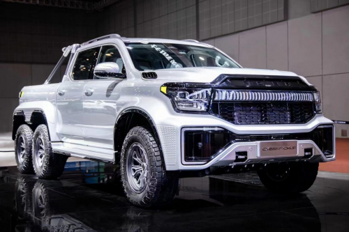 4月,长城全新打造的中国首个6X6超级越野平台在上海车展全球首秀,长城炮与超境共创的长城炮首款6X6车型CYBERP!CKUP耀世登场。中国首个6X6超级越野平台,采取“3轴6驱”布局,标配5把差速锁,成就全地形超级越野能力;可搭载长城3.0T超级混动、电动、氢能等超级动力;匹配皮卡、SUV车身,同步开发二类底盘,实现全生态超级拓展,打造多元化汽车全新品类。